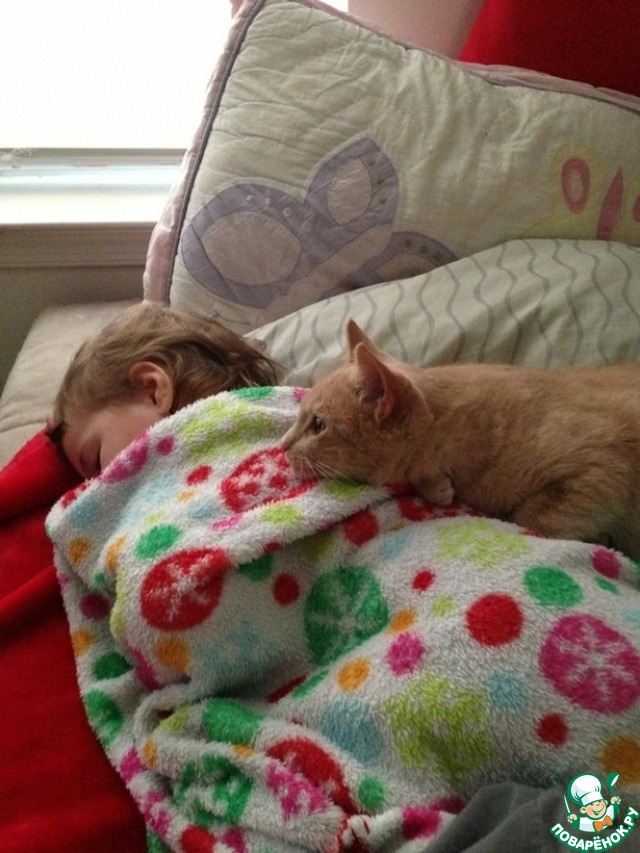 а наш кот Жора любит спать в детской кровати, мы его как только не гоняем