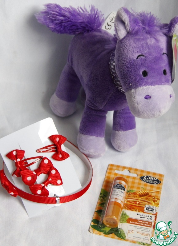 Лошадка- символ года - в детскую коллекцию + набор для модницы (помада для фигуристки и обруч с заколками, резинками)