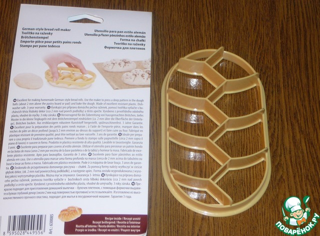 Очень неожиданный для меня прибор -- форма для оттиска на булочках, имитация "косички". Мне ее подарила СНежк_а. Светик, вот, отчитываюсь, испытания провела, булок напекла, делюсь впечатлениями!!!! [cut]