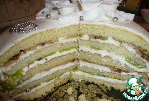 Торт очень нежный и аккуратный ,не скажешь, что первый торт комом и внутри мне понравился, думаю, что фрукты очень в тему