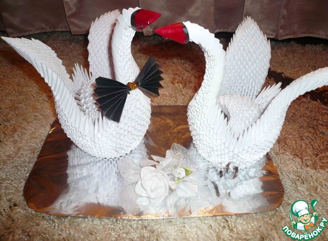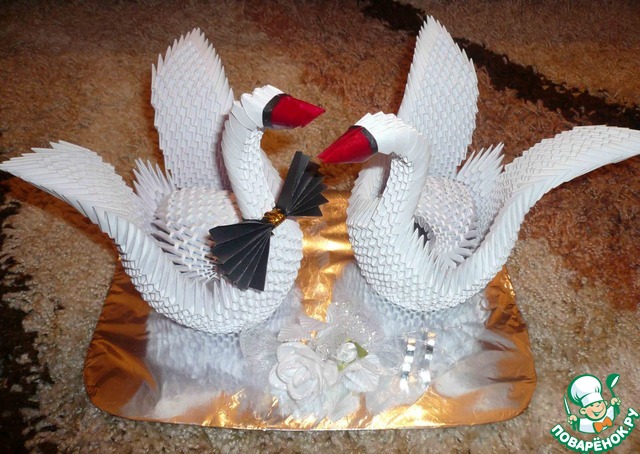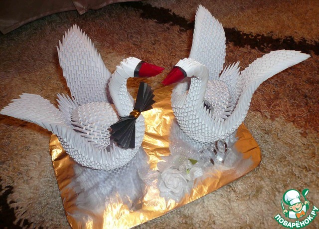 И вот таких лебедей, я сделала в подарок. Так же, моя первая работа в технике оригами.