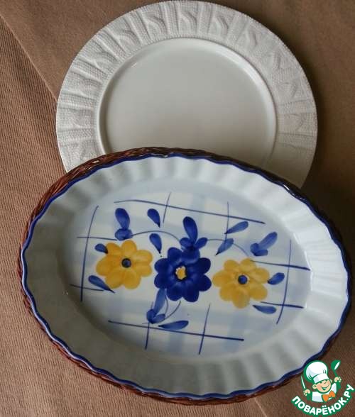 чудеснейшая форма для запекания с плетеной подставкой, очень красивая и удобная, и ты знаешь, кто ее быстренько прихватизировал и теперь довольный-предовольный,