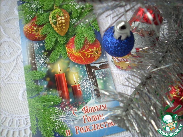 А в нем очень красивые открыточки, очаровательный подсвечник, очень красивые нарядные круглые салфетки, я таких и не встречала у нас. Ложечки, которые мечтала иметь, но все только поглядывала в их сторону. Теперь они у меня есть!!! Спасибо, моя хорошая!!!