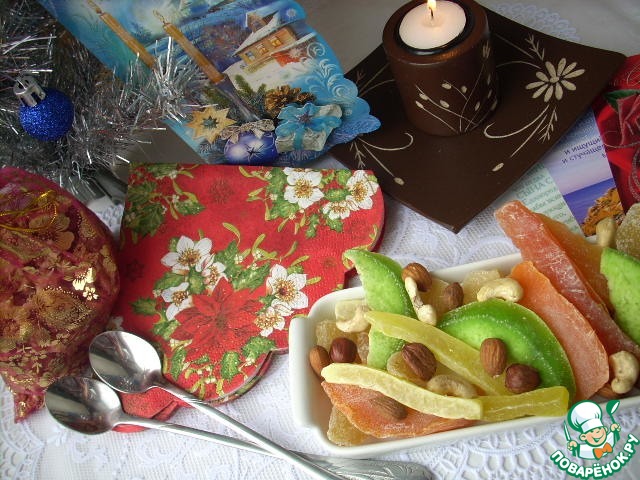 А еще волшебный, очень красивый мешочек с ассорти из различных орешков, их уже не осталось. И набор ассорти из сухофруктов, успела запечатлить самую малую часть.