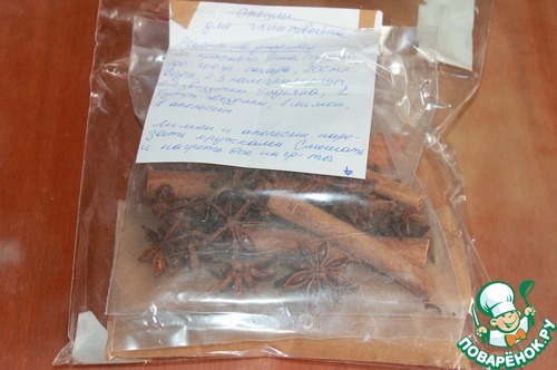 ну это просто богатство: набор специй для глинтвейна. Обожаю глинтвейн, у нас как раз морозы ударили -30, будем греться. А еще в этом наборе цветочки бадьяна. Я их только на фотках в рецептах девочек видела и очень завидовала. Теперь и у меня есть бадьян. Ну и конечно все с подробной инструкцией, написанной заботливой Анютиной рукой