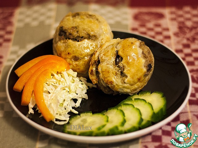Еще один рецепт Нины-супербабушки "Слоеные клубочки с курицей и грибами"