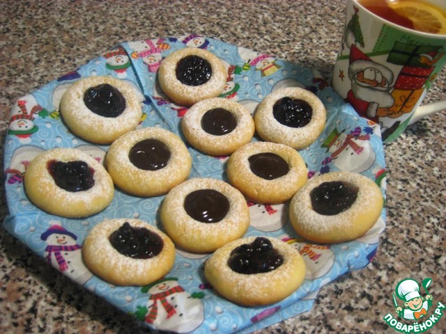 "Печенье с конфитюром" от поваренка ларек https://www.povarenok.ru/recipes/show/70829/ Делала с черносмородиновыми ягодками и шоколадом