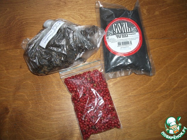 А это чёрная соль , розовый перец и сладкое индонезийское мясо , которое Надюша готовила сама !