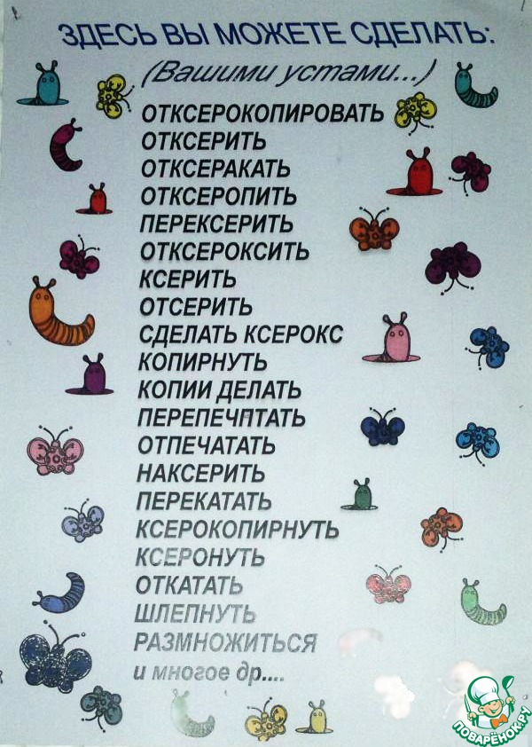 Мне понравилось про ксерокопии! лежала просто! У меня было интернет-кафе, так что близкая мне тематика. Да и в универе часто услышишь подобное..и копирнуть, иразмножить