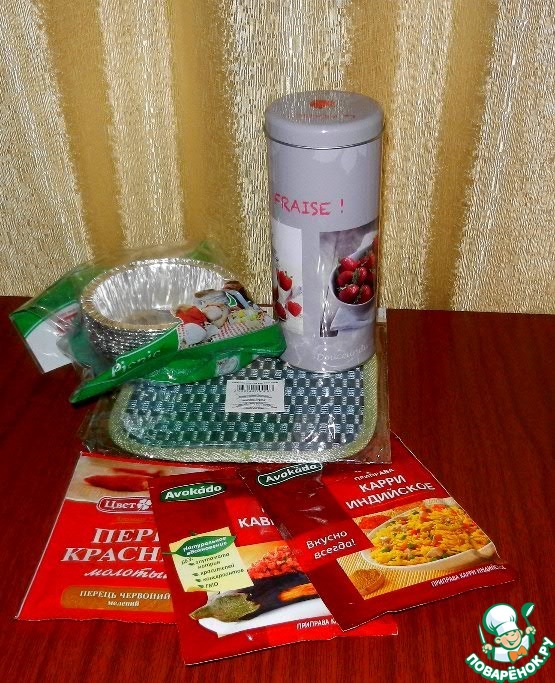 Это специи, подставочка под горячее, формочки для выпечки из фольги, кЬясивая баночка для сыпучих