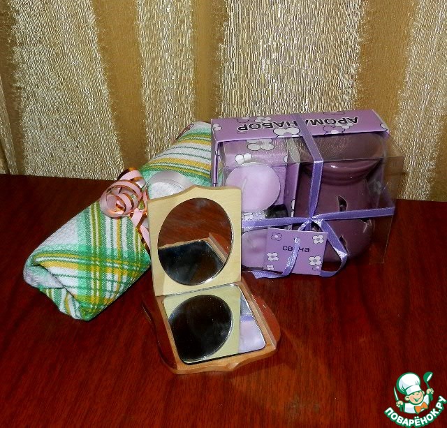 Арома наборчик, зеркальце из Коктебеля и полотенечко для кухни ф клеточку