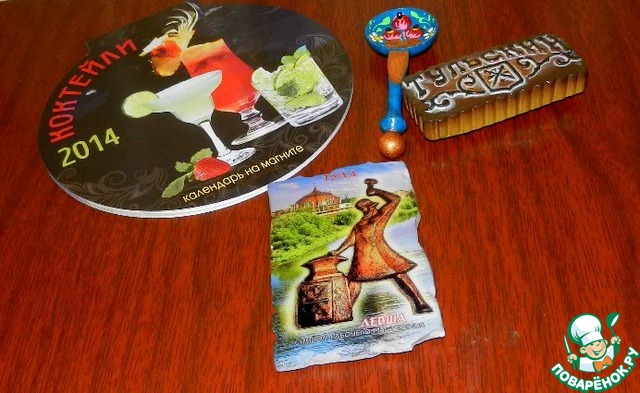 Календарь на магните с рецептами коктейлей, магнитик-пряник, магнитик Тула с Левшой и манюняя ложечка