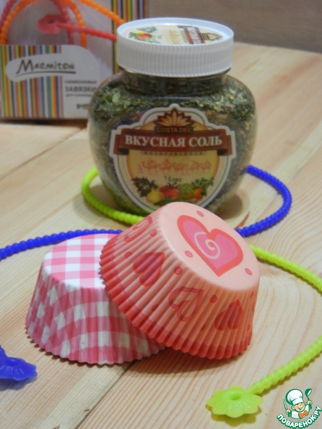 Необычайно ароматная приправка под названием "Вкусная соль" и яркие манжетки для кексов. У нас встречала только однотонные, разноцветных, а тем более с такими красивыми рисунками, мне никогда не попадались :blush: