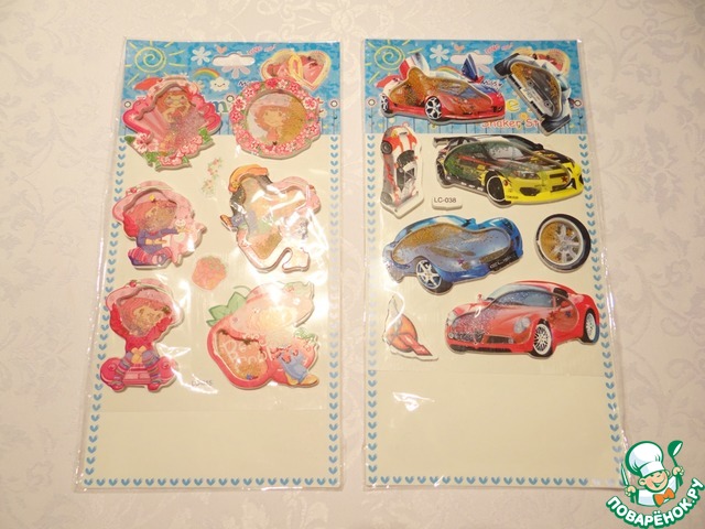 А это интересные объемные наклейки с пересыпающимися внутри маленькими шариками и звездочками (дети еле дождались, когда окончится фотосессия!):