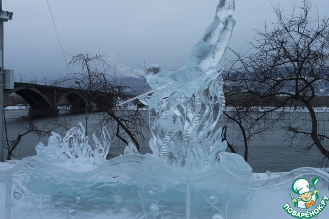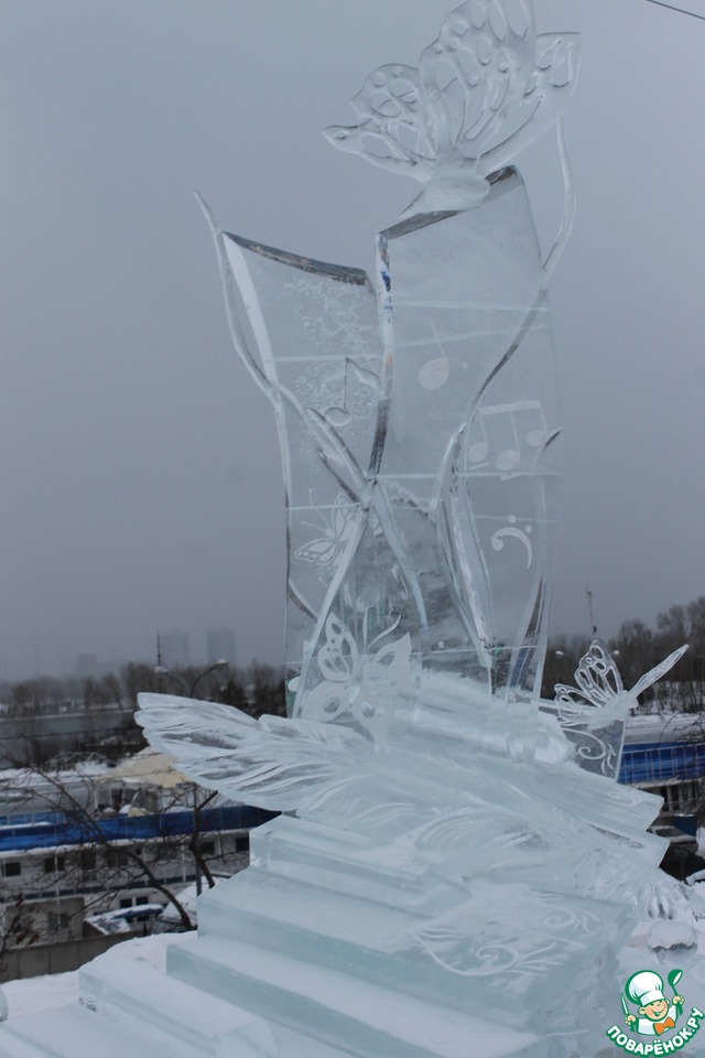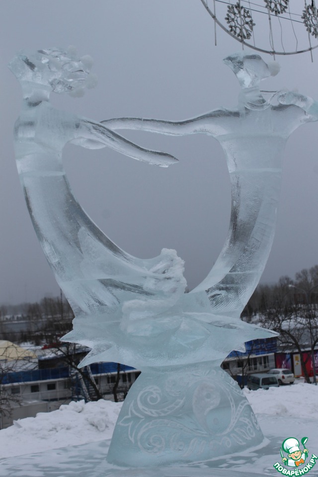 В номинации «ЛЁД»: Скульптура «Танго в ночи». Это у меня 1-я фотография, т.е. работа. (Где бутылки изо льда).