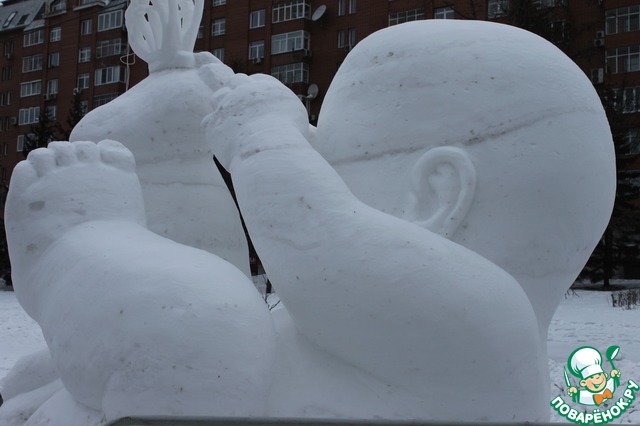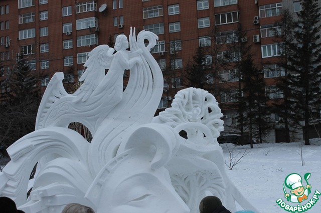 В номинации «СНЕГ»: I МЕСТО - команда «Кривая Синяя Линия», г. Пермь. Скульптура «Линия жизни». (Фото после моржа и рыбы).