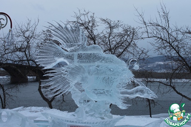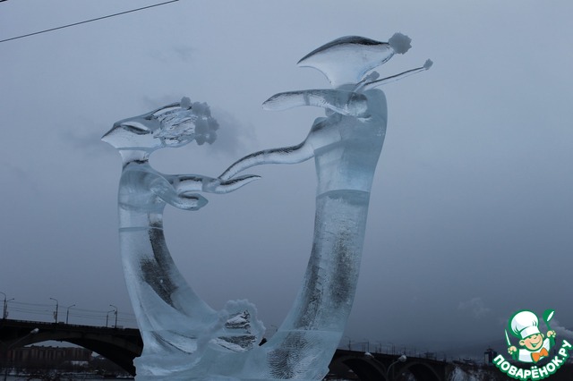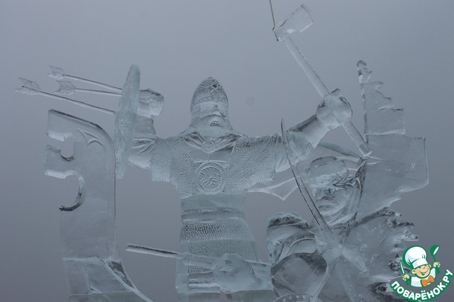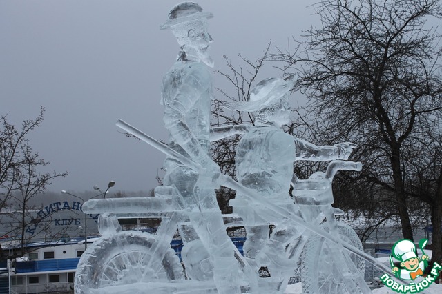 В номинации «ЛЁД»: Скульптура «Танго в ночи». Это у меня 1-я фотография, т.е. работа. (Где бутылки изо льда).