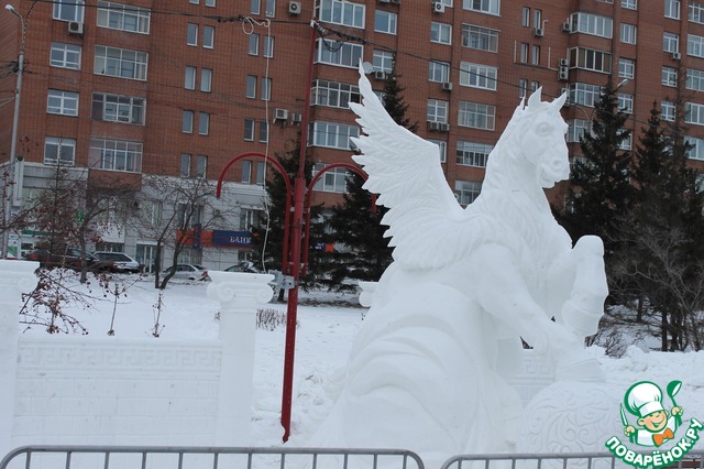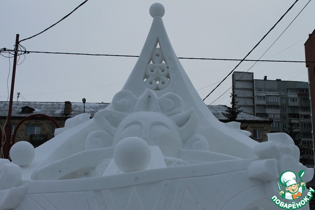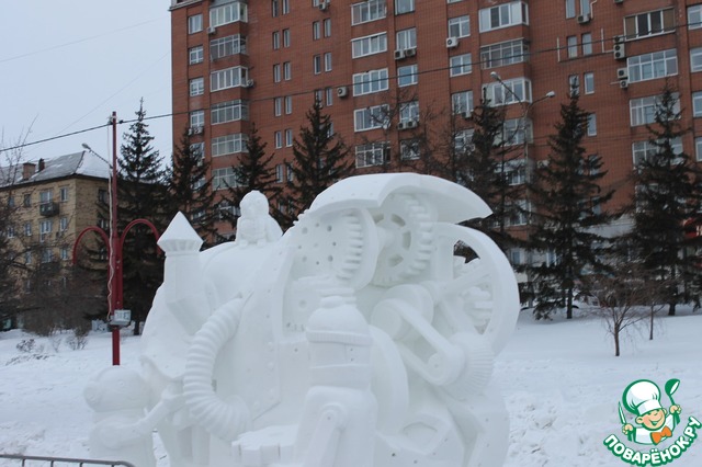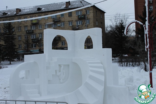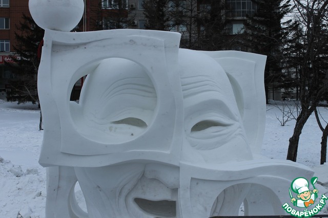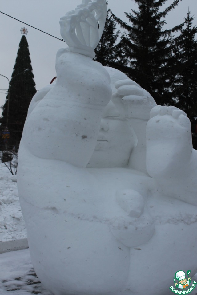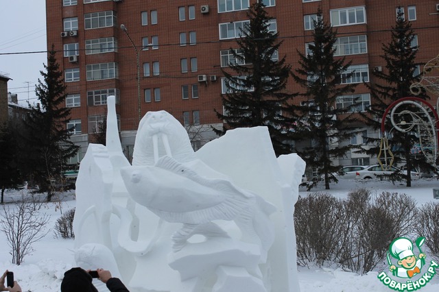 В номинации «СНЕГ»: I МЕСТО - команда «Кривая Синяя Линия», г. Пермь. Скульптура «Линия жизни». (Фото после моржа и рыбы).