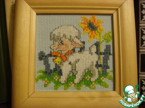 Люблю вышивку давно, но из-за постоянной нехватки времени считаю себя вечно начинающей вышивальщицей [cut] Когда-то мой тогда еще совсем небольшой сын попросил купить для него набор для вышивания.Я удивилась( мальчик все-таки),но, думаю ладно, пусть мелкую моторику развивает.Выбрали мы с ним несложного милого козленка, но терпения его хватило на десяток крестиков, пришлось заканчивать самой, чтоб добру не пропадать