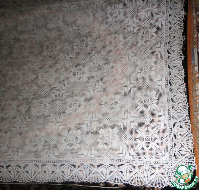 Эту скатерть она вязала крючком 2 года,размер 120 х 190 см