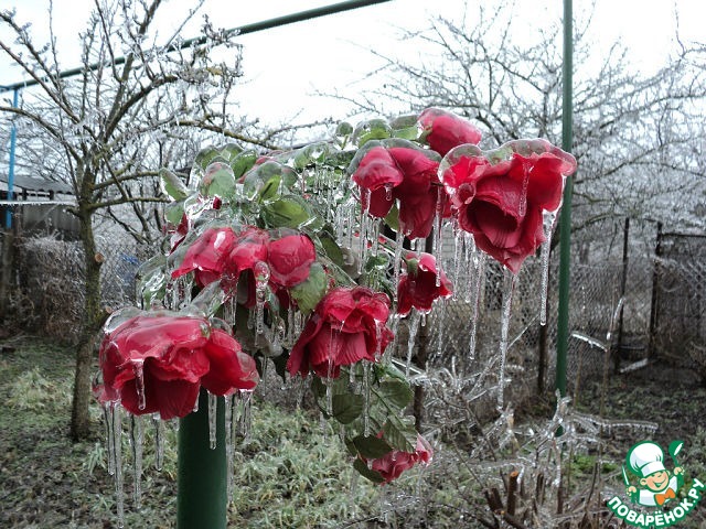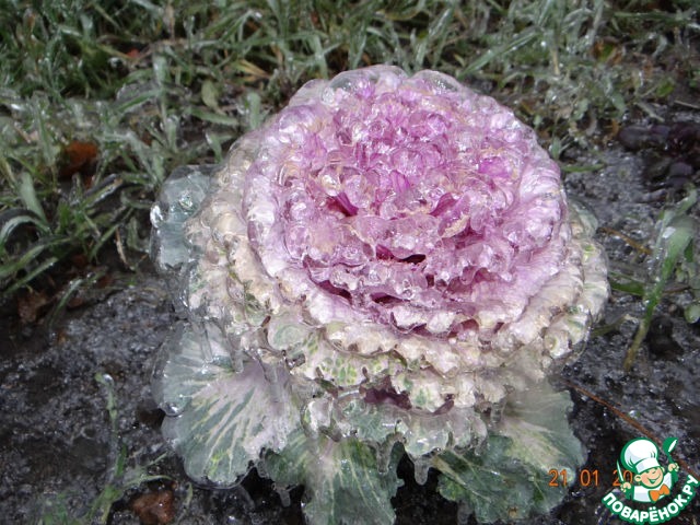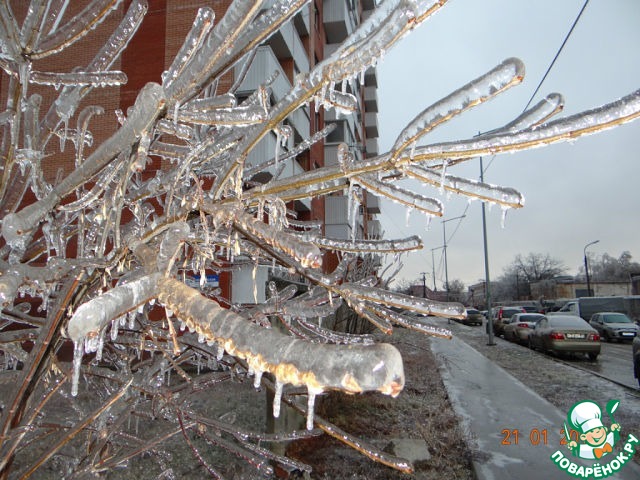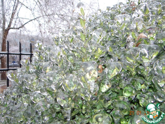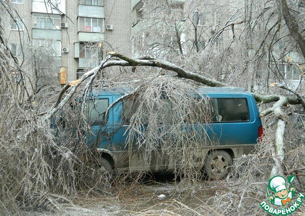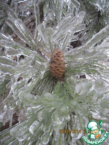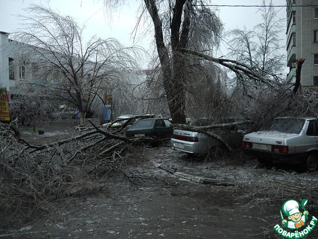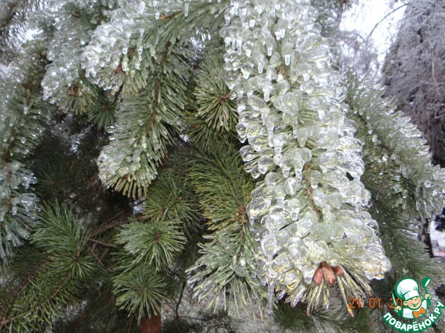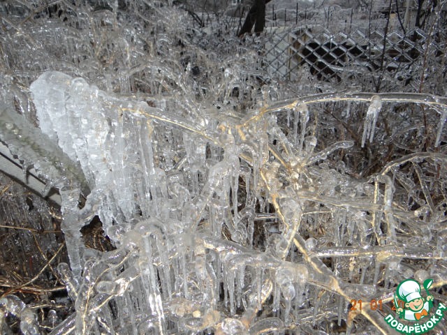 Ната,какая кошмарная красота.Елки как креветки в ледяном панцире.А капуста на фонтан похожа.Деревья жалко.У нас такое было,сливу переломало. Делала стяжки,почти все прижились.Правда подпорки не убираем.
