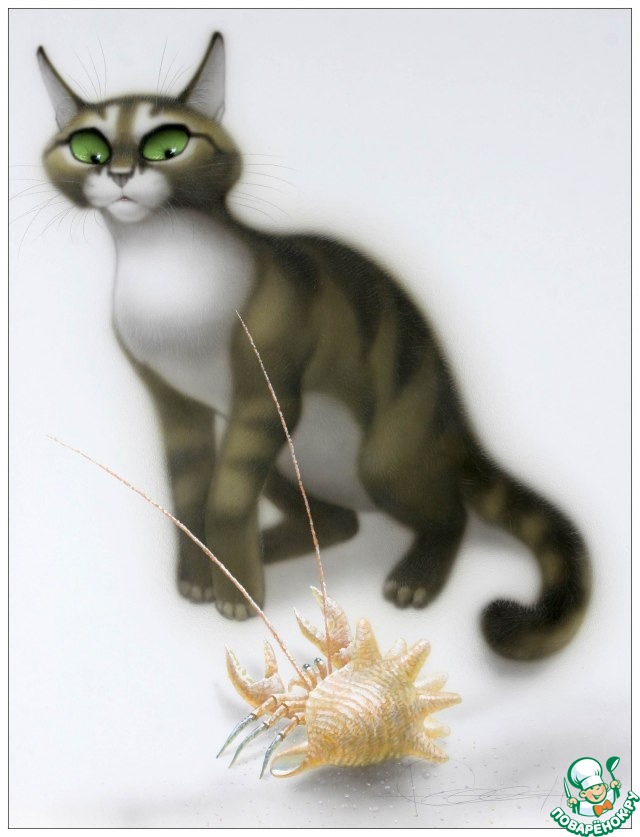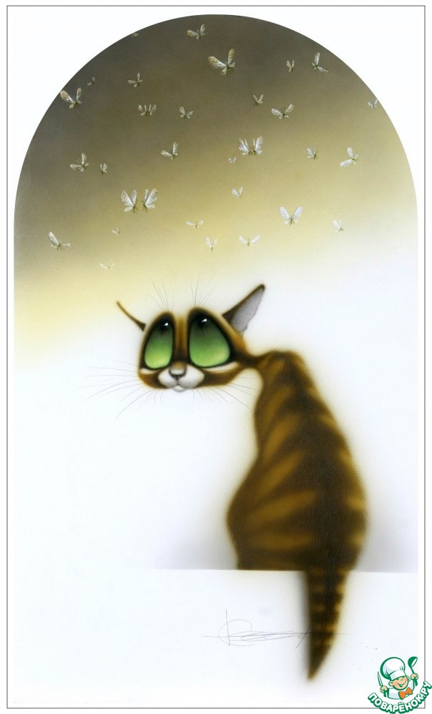 Как он их изображает: прямо видно, что пушистые. Какая-то особая техника создания пушистого контура кошачьего тельца