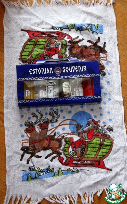 Замечательная стильная чёрная фигурная посуда, магнитик Таллина (бывала я там когда-то!) и красивейшая новогодняя салфеточка (уже использовала при фото-отчётиках)