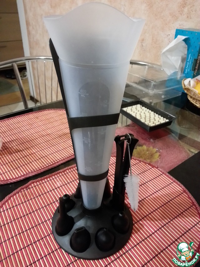 Юля,классный набор.Я правильно поняла ,на последнем снимке подставка при наполнении кремом? И насадки как крепятся.А сам мешочек из чего?Извините что много вопросов.Спасибо.