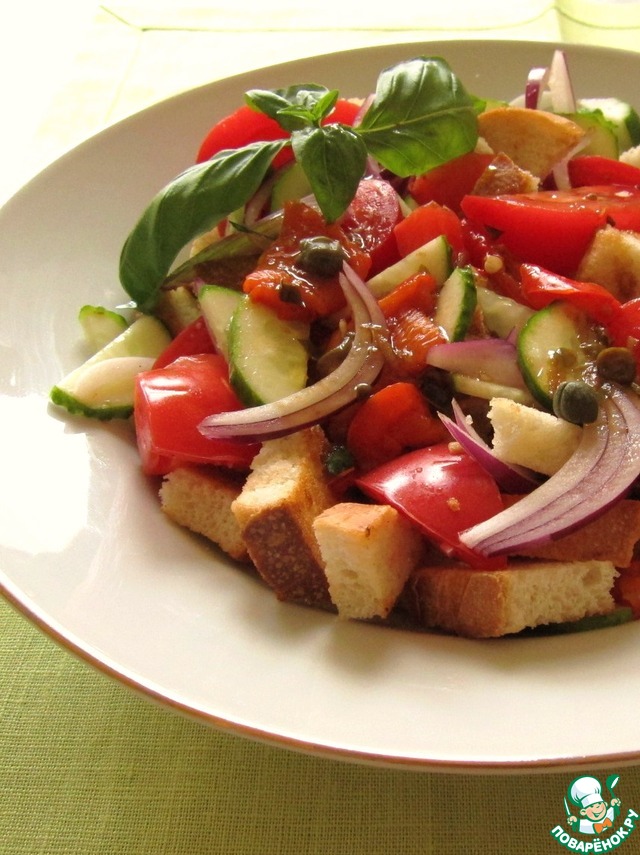 [cut] Панцанелла с печеным перцем https://www.povarenok.ru/recipes/show/70687/ Мой фаворит, делаю очень часто! Простой салат на каждый день, но заправка решает все!