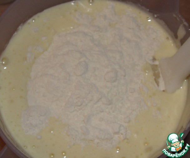 аккуратно вводим муку и все хорошо перемешиваем лопаткой