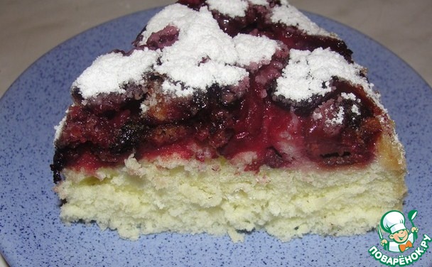 готовила в МВ, чашу смазываем маслом, выливаем тесто и добавляем вишню.