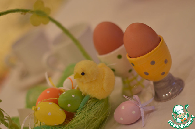 1 Оригинальная идея подачи яиц, хороший свет. На мой взгляд снимок сильно обрезан сверху.
