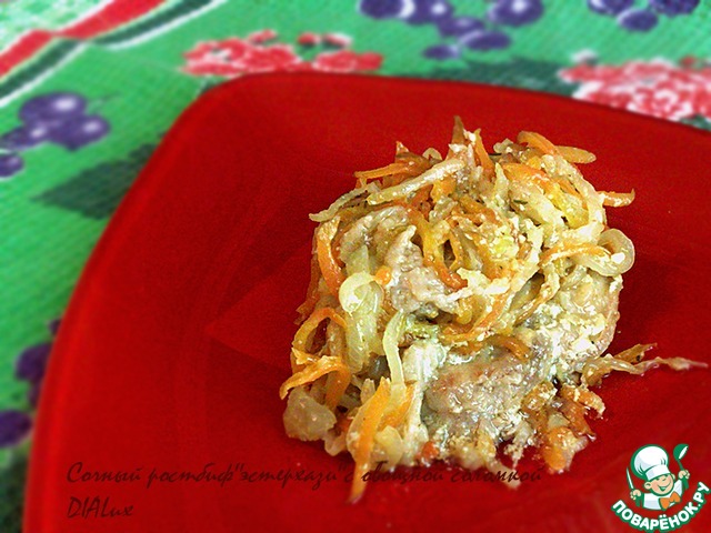 Мясо получилось очень нежное и мягкое. Готовила из свинины. В овощную соломку добавила корень сельдерея.