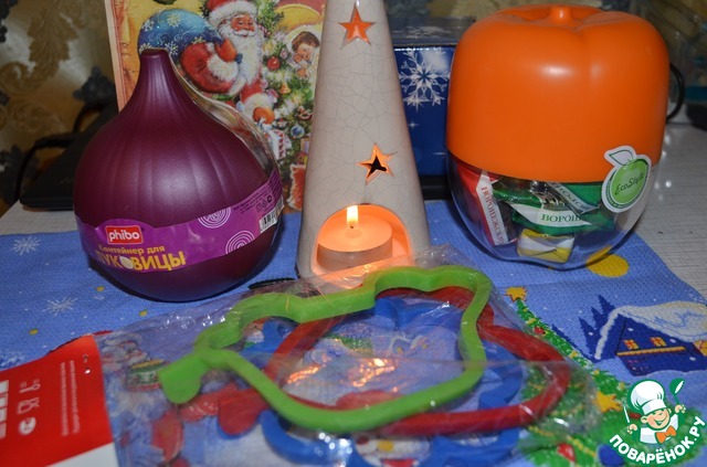 Контейнеры для хранения лука и перца(наполненные шоколадными конфетами), силиконовые формочки для яиц