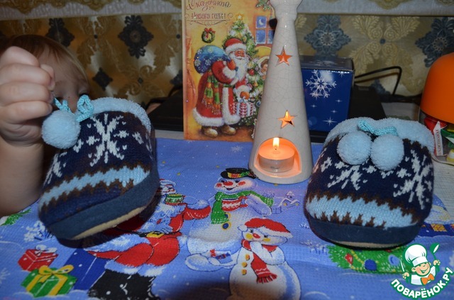 Теплые мягонькие тапочки для Ванюшки(они ему немного велики,но так нравятся,что он их до сих пор теребит-то играет с ними,то спать ложится).
