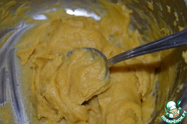 Перво-наперво мы делаем заварное тестоМожно делать свое любимое,но я делала в первый раз по рецепту ЮВ):3 яйца,1 ст муки,100г.слив.масла и 1/4 ч.л.корицы.Все.