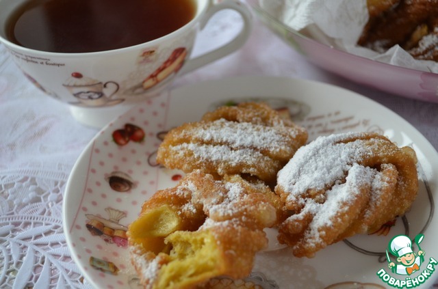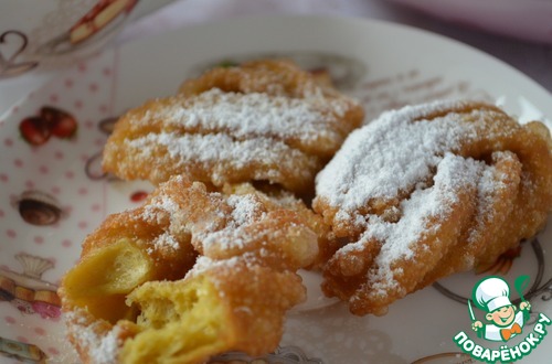 Затем это тесто с помощью кондит.шприца высаживаем в горячее масло и ждем пару минут
