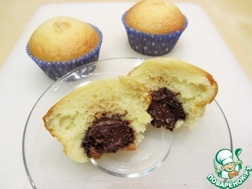 Приготовила такие кексы с шоколадной начинкой https://www.povarenok.ru/recipes/show/57953 Очень нежные и воздушные кексы! правда, у меня конфеты утонули, видимо, тяжелые очень