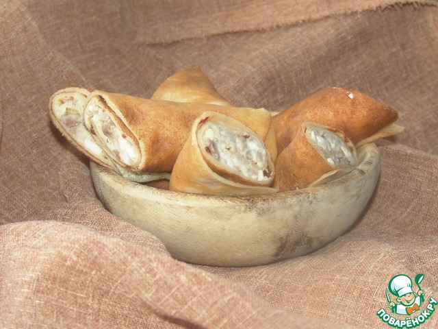 Фаршировала блинчики селедочным форшмаком. Начинка и блины нашли друг друга!