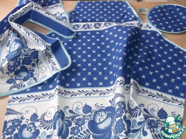 Нежный небесно-голубой фартушек, полотенце и прихваточка!