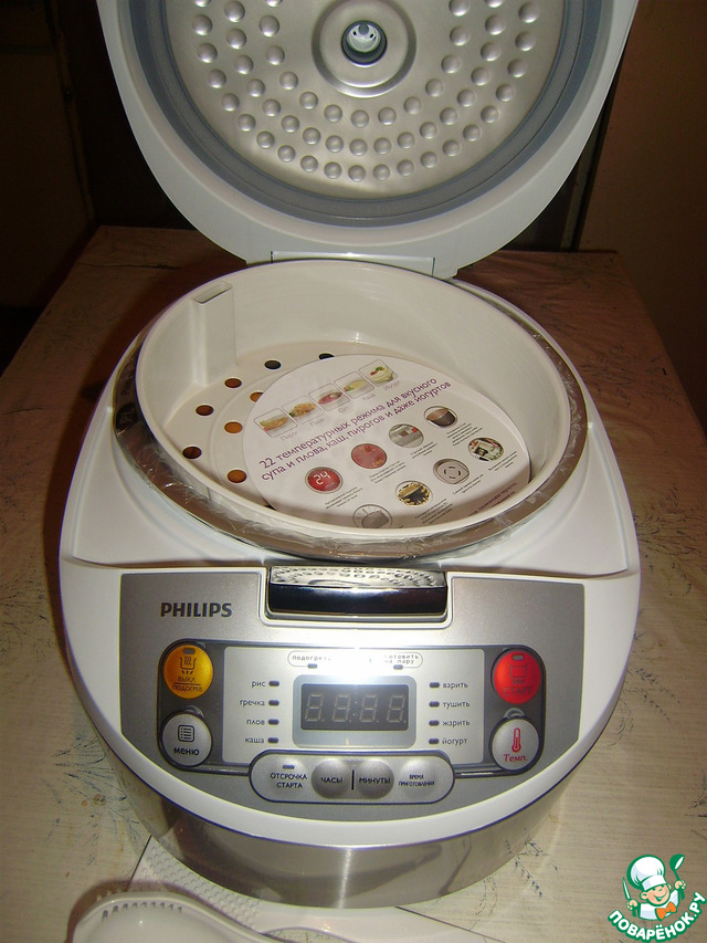 А рецепт попробуй, там всё очень просто, сделала, положила, я даже масло не лила, на сухую! Крышку закрыла, 20 мин., открыла, перевернула, ещё 15 мин, потом сыр, ещё 5 мин и готово! Ты инструкцию прочитай, своей красавицы!