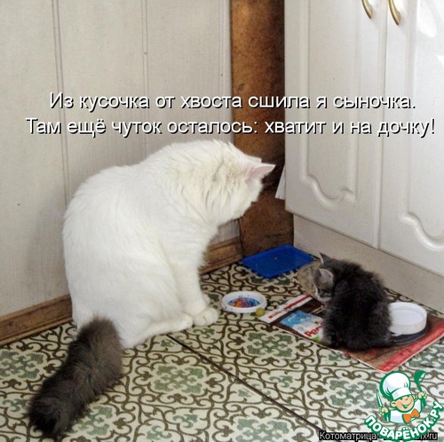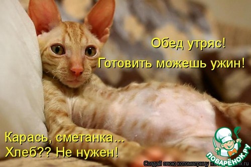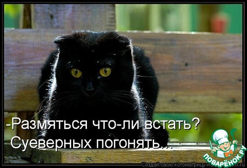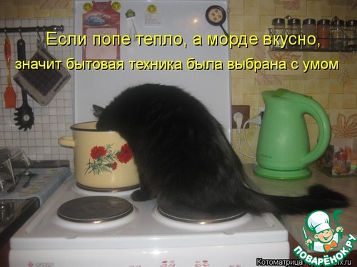 Утро выдалось тяжеловатым-нужно убрать под балконом обломки бетона и плитки Пока муж завтракал,зашла на сайт и тут-Ваш пост. Хохотали до колик в животе Особенно про черного кота.Муж сказал:"У меня от смеха-живот заболел! Пойду лучше бетон носить,а ты еще что-нибудь такое найди!" Ура! Да здравствуют поварята с чувством юмора!