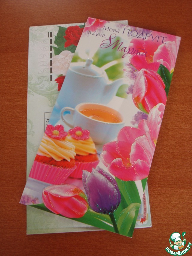 Необыкновенно вкусное угощения к моему любимому зеленому чаю от Светочки СНежк_а с замечательными пожеланиями для моей мамули.