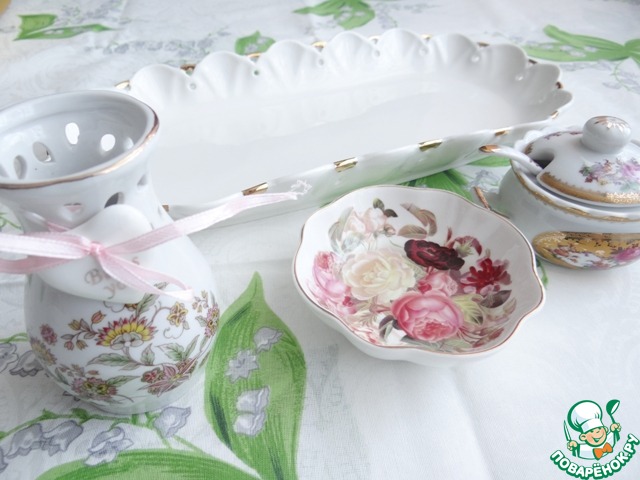 А какую посуду мне подарила Любашка! Тут и розетки для варенья, и блюдо с красивым резным краем, и соусник с ложкой, и вазочка с сердечком.