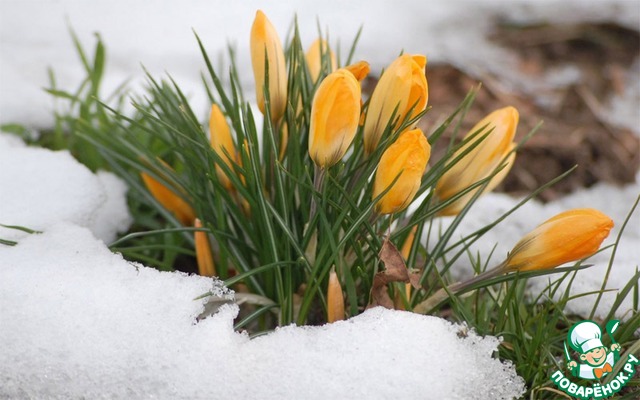 И снег лежит, а они родимые пробились и бутоны раскрыли - любуйтесь!