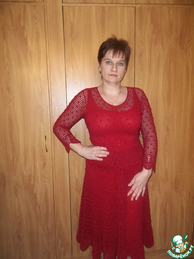 Сверху вниз восхищалась: ах- солод, ах - шафран, ах - какой салатничек, ах - жемчуг! ... А тут! Ого! Ах! Ничего себе! Вот это да! Обалдеть! Костюм ручной вязки! Ну, Женечка, ты даешь! Девушка в красном! Вы забыли ожерелье к костюмчику! Красотка!