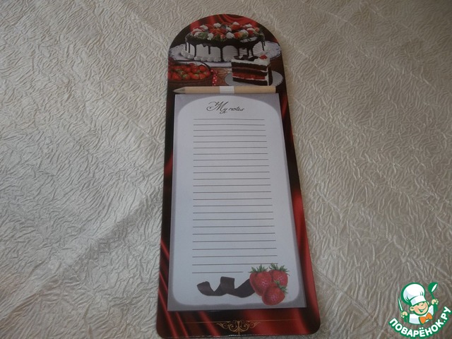 Блокнот с карандашом на магнитах.Такая удобная вещь!!!! Уже висит на холодильнике!!!