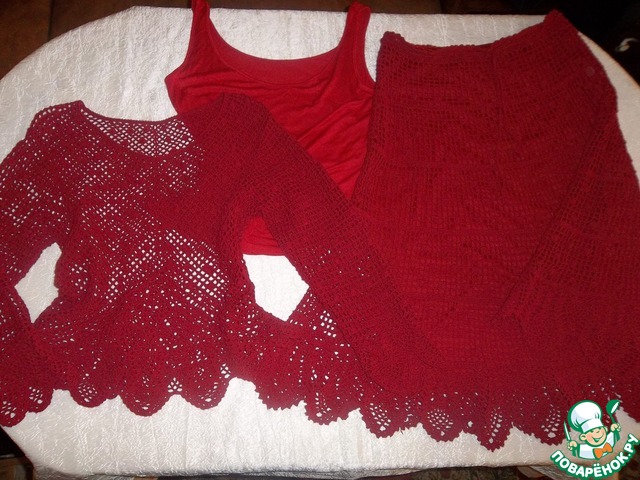 А это Женечка,для меня связала шикарный,очень красивый костюм!!!! И маечку под цвет подобрала!Заботливая ты моя!!!!