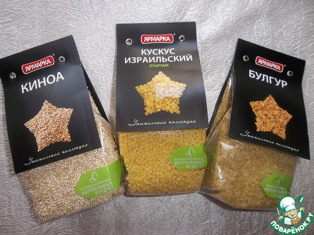 Ой,ну а это вкуснятина КИНОА,КУСКУС ИЗРАИЛЬСКИЙ и БУЛГУР!!!!