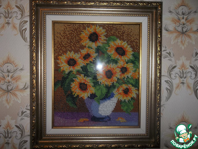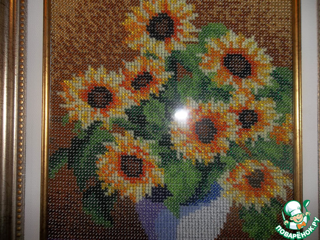 Подсолнухи получились тоже отлично, такая тёплая осенняя гамма цветов, не раздражающая своей яркостью, но и не мрачная. Ты просто умница, опять порадовала своим искусством